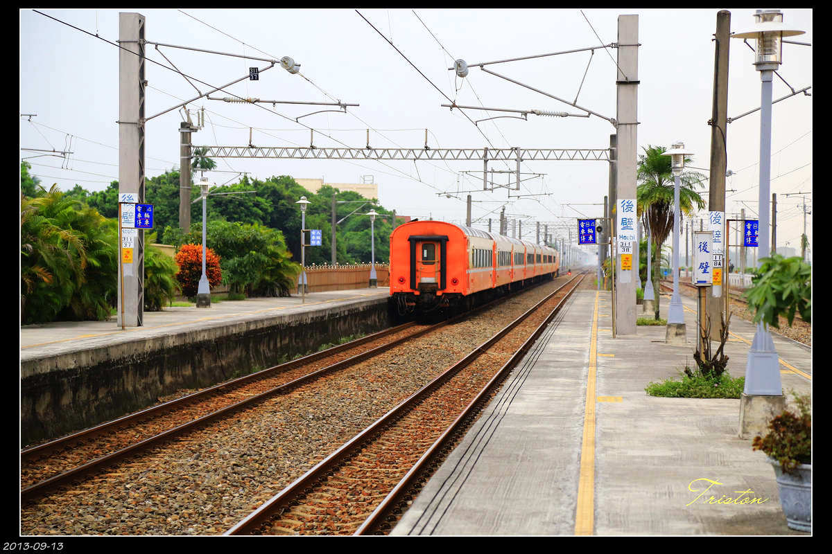 後壁車站,木造車站,屋頂為水泥瓦,用立於洗石子基座上的Y形木柱來支撐的迴廊。牆壁底部是土黃色洗石子牆基,上方則是白色雨淋板。一望即知,有點歷史的。七十年。1943年建成。