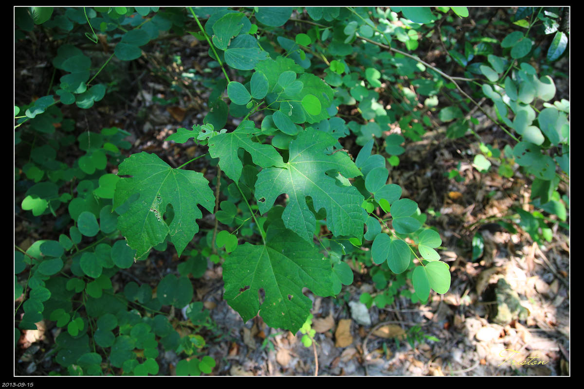 構樹的生長葉。構樹葉形轉變的順序為心形葉→缺刻狀葉→深裂葉。根據研究發現在陰暗處生長的心形葉,為了要爭奪更多的陽光,便朝接收陽光面積較大的缺刻葉以及深裂葉的方向轉變,而在陽光充足的地方生長的構樹,由於深裂葉能有效的吸收陽光,便不再改變其葉片的形狀。