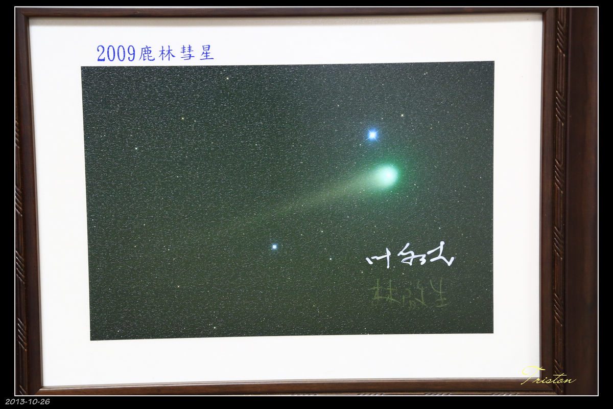 2009年發現的鹿林彗星。鹿林彗星是在台灣本土發現的第一顆彗星,也是台灣與中國大陸天文學界所合作發現的第一顆彗星。由國立中央大學的林啟生及廣州中山大學的葉泉志於2007年7月11日經由位於鹿林前山的鹿林天文台,在寶瓶座附近發現疑似彗星的天體。後經由美國天文學家詹姆士·楊確認為彗星。正式命名為鹿林彗星(Comet Lulin),編號為C/2007 N3。[