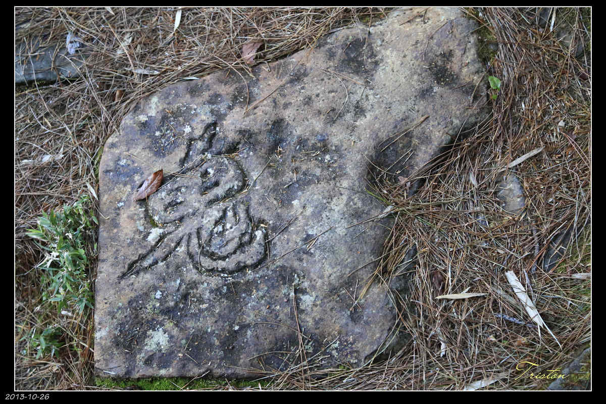 沿著步道上行,在轉彎處看到石頭上有個字樣,不知是鬼還是兔?也不知是自然的還是人為的,但聽說看到這個圖樣,就代表快到了...