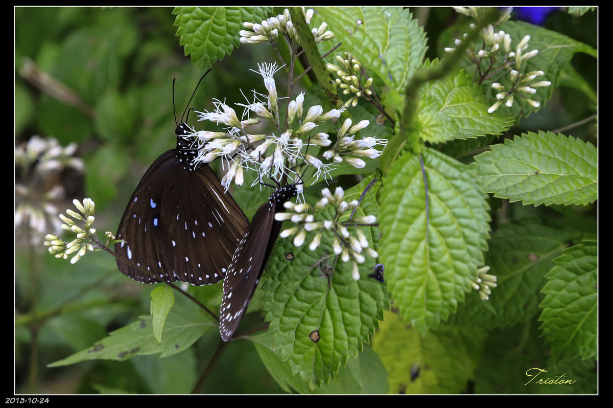 蔓澤蘭上的異紋帶蛺蝶(?)一邊吸一邊繞個花朵轉圈圈...講了通電話還在吸,可真專注的。