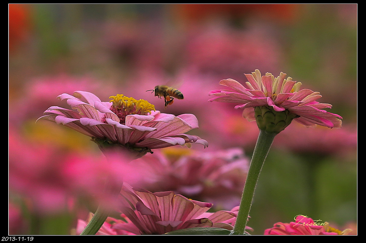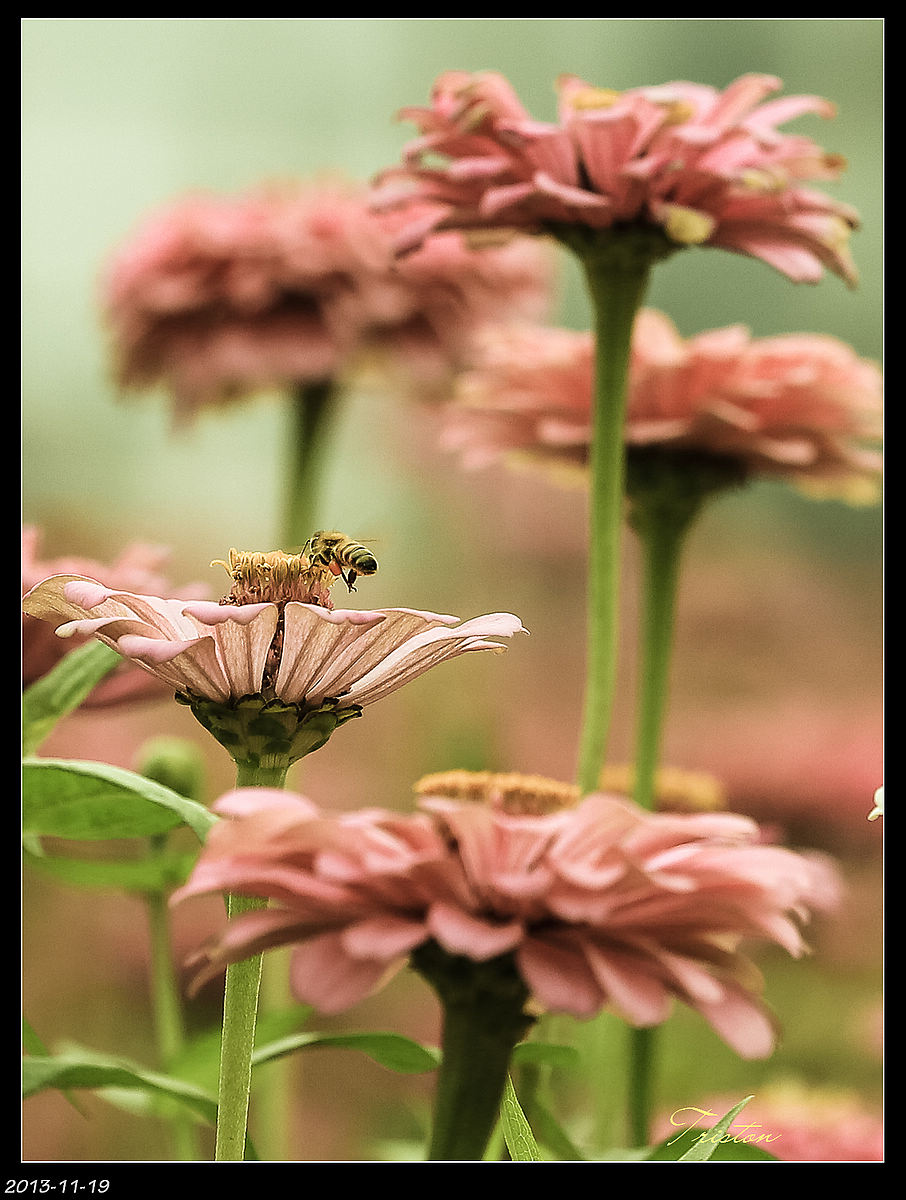 蜜蜂也趁著花還沒凋萎,趕緊出來採蜜...