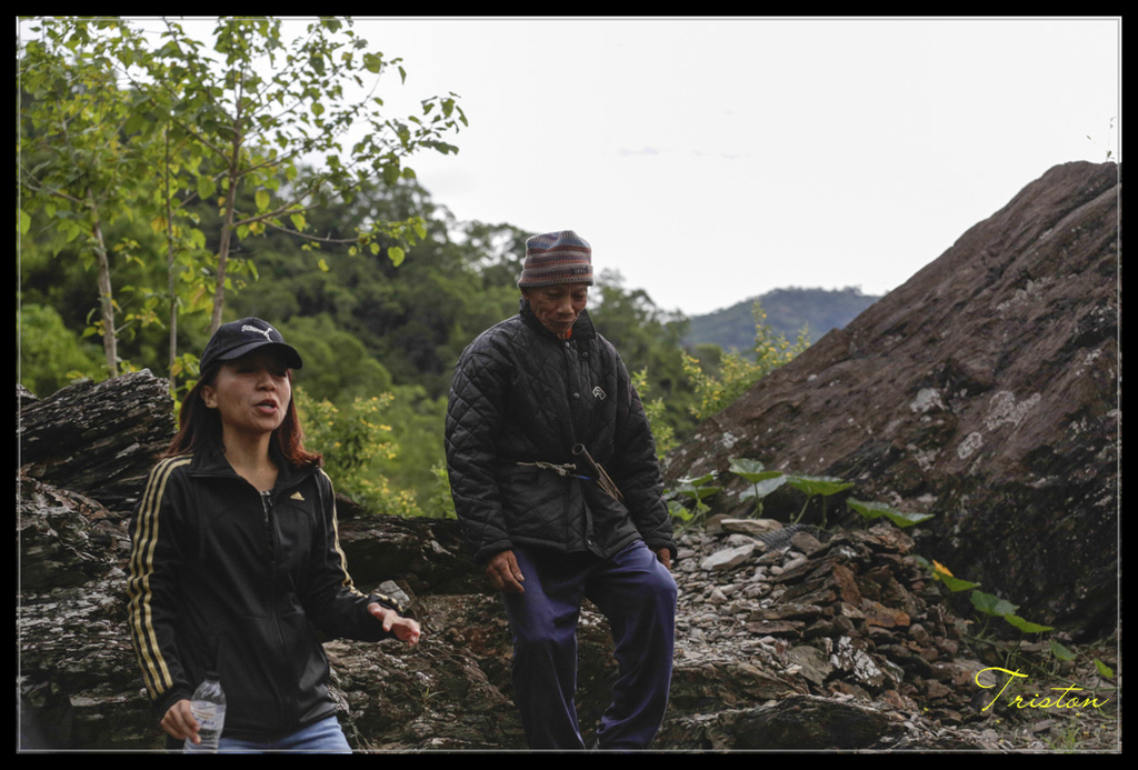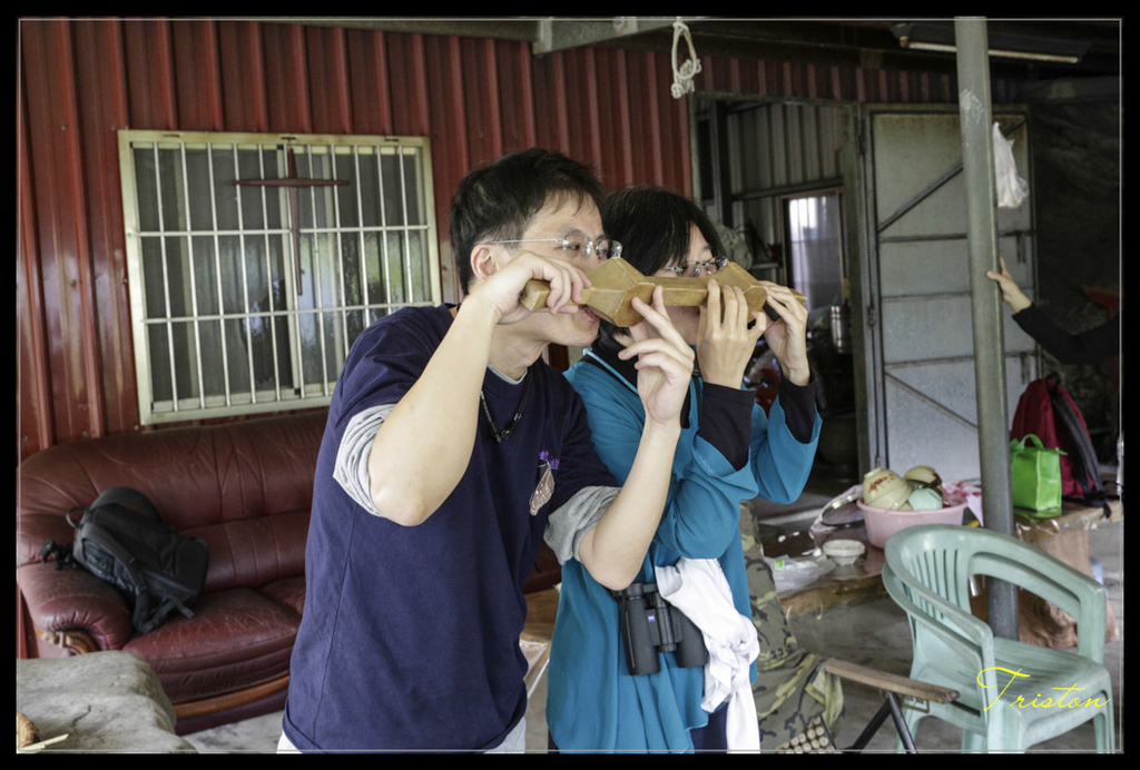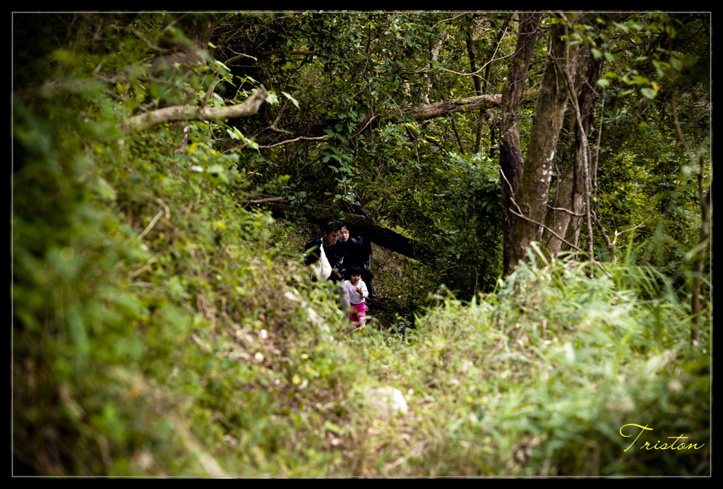 稍微休整一下,我們開始進入山谷,盼望能見到那停滿坑整谷的紫斑蝶!照相中的人物就是Wulipupu公主和江爸爸,Wulipupu公主就是美英姐啦!很活潑也很善談,江爸就顯得比較害羞一點了....