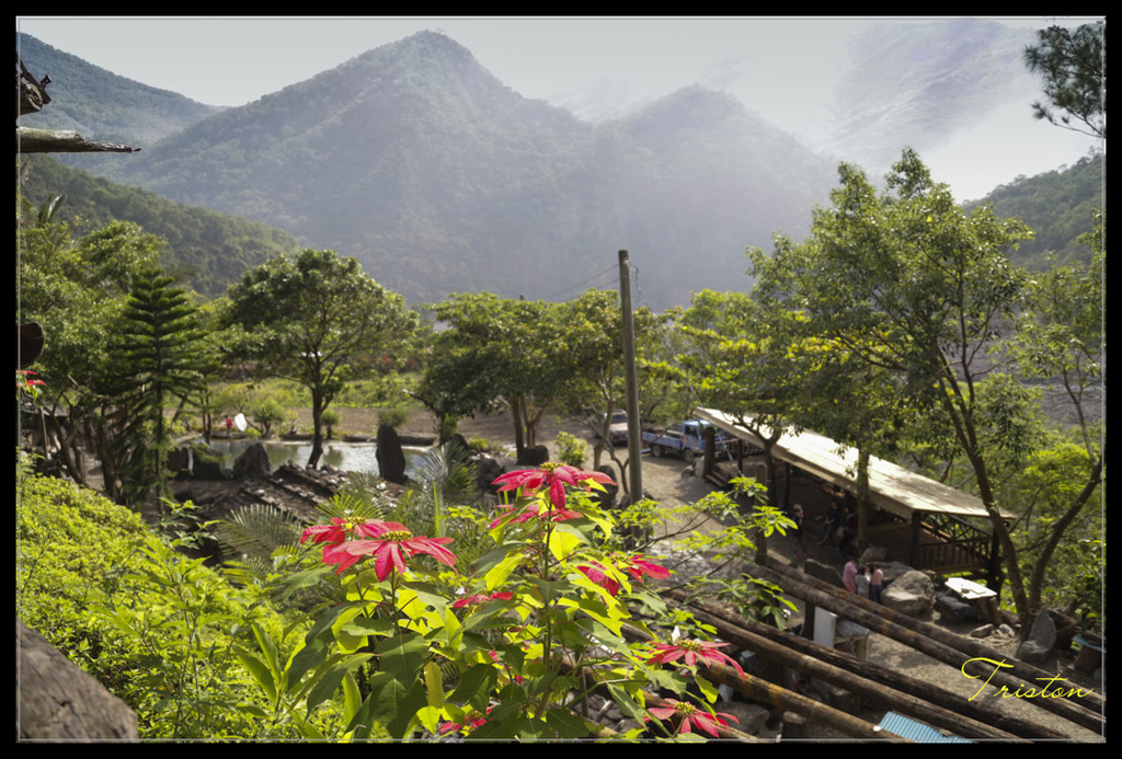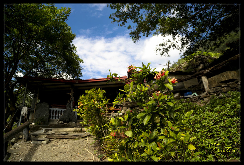 經過一連串顛簸的路程,我們終於抵達"江山谷"。為什麼名字叫江山谷,據領我們進谷的Wulipupu公主(Wulipupu聽說是排灣族蝴蝶的意思)說,這裡是由她的爺爺建立,然後由她的爸爸擴大規模的房子,這裡原本是他們的耕作地,後來因為接觸到蝴蝶保育協會的志工,便慨然投入蝴蝶保育,但是這裡是私人土地,如果不是蝴蝶保育協會或生態相關人員帶領,是不接受遊客進入。
