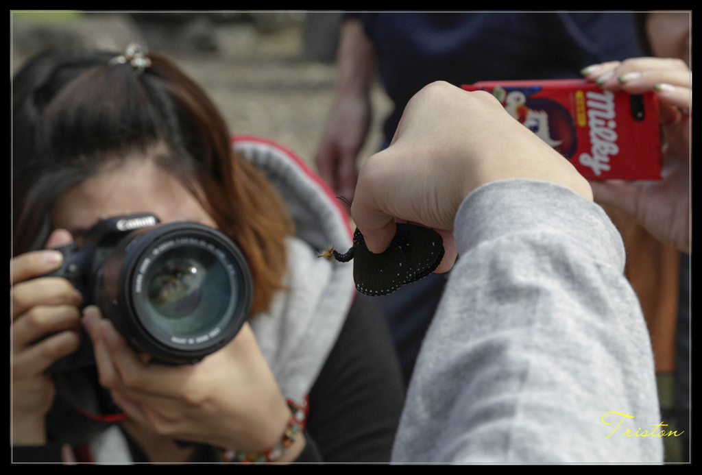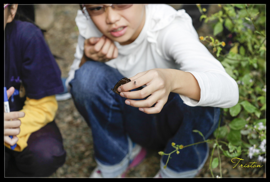 蝴蝶達人怕我們沒見著滿山飛舞的蝴蝶敗興而歸,在一番努力下,終於尋來幾隻紫斑蝶了!唉!辛苦啦...