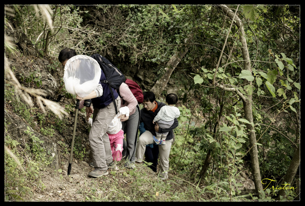 這次的參與朋友都是團長羅先生(持網者)的同事居多,不過他們好像不太清楚今天的情況,有點誤上賊船的感覺哦!抱著小孩爬山的那位真是辛苦了,他說原以為是到了民宿就可以坐下看蝴蝶了.......顯然旅遊說明不太正確哦!!!