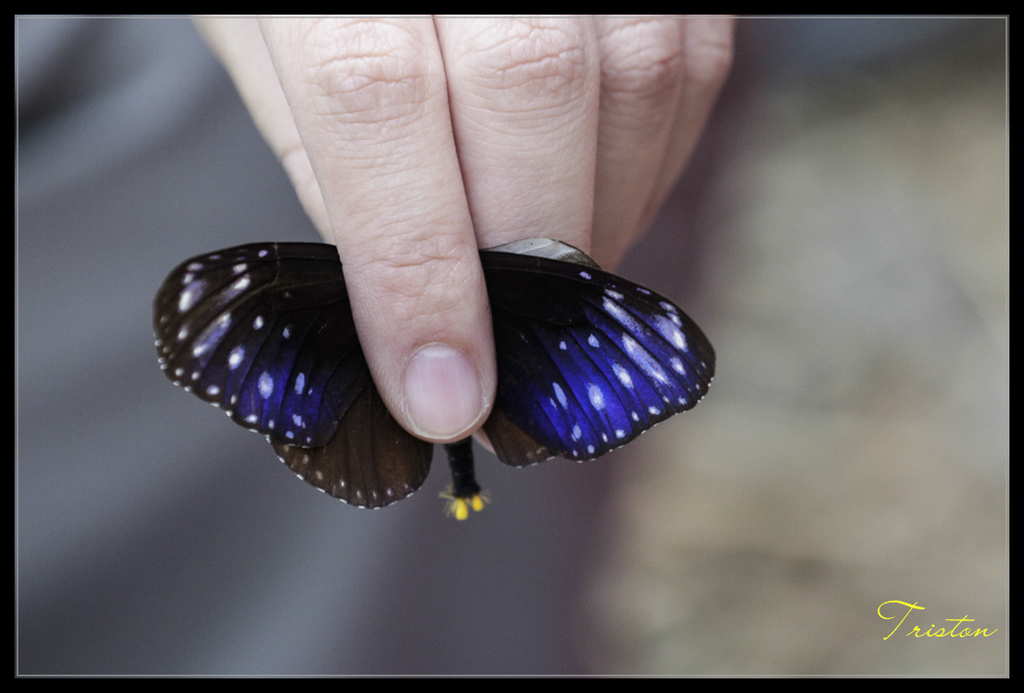 達人手上的這一隻,上翅的中間有三點,所以可以知道是"斯氏紫斑蝶"..