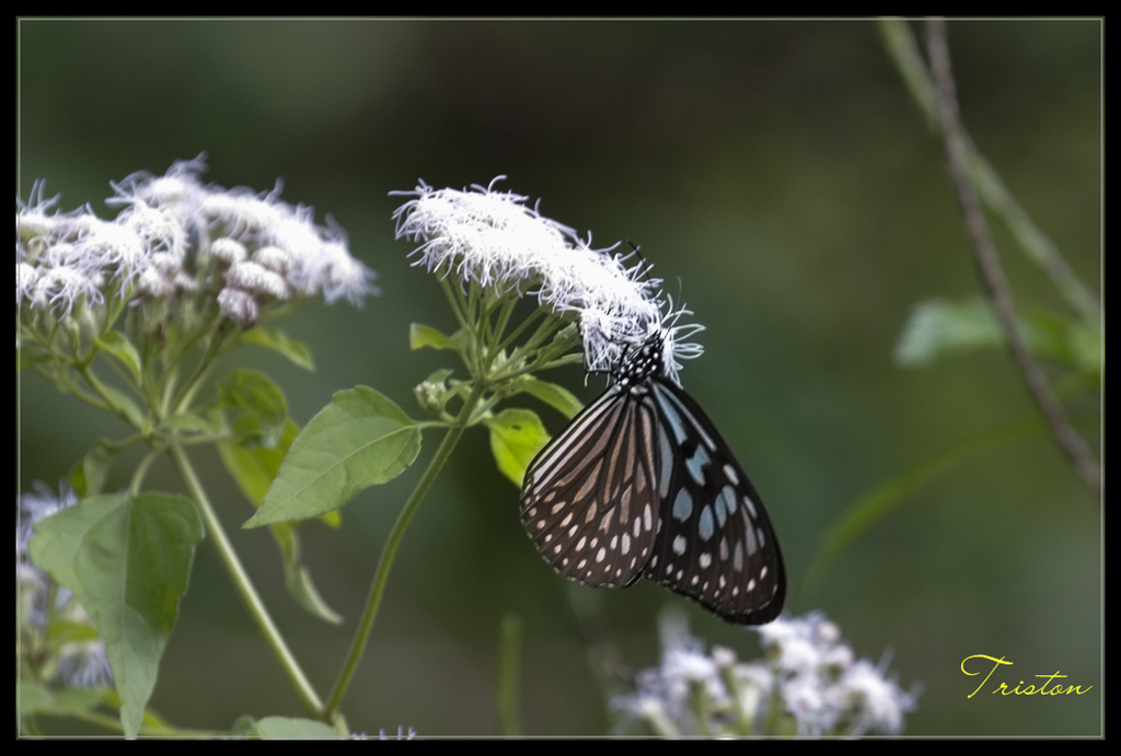 把蝴蝶抖一抖,有些蝴蝶尾巴會露毛哦,如果不忌憚的話,還可以聞一聞,像斯氏紫斑蝶的味道就還不錯呢!會露毛的蝴蝶其實叫"毛筆器",它會分泌出「斑蝶素」,其主要成份來自雄蝶嗜食的澤蘭植物花蜜中富含的吡咯啶植物鹼。因此在澤蘭上訪花的紫斑蝶幾乎都是雄蝶。