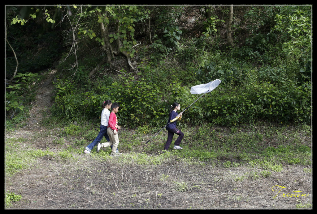 小朋友趁著午餐前的休息,揮舞著大網,準備去看看有沒有蝶蹤,好進行標放!