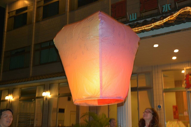 望著天燈冉冉昇空,慢慢地消失在黑暗的夜空中,心中真的會有一點點的感動,好像自己寫的什麼願望啊祈求啊,真的乘風而去了...嗯..還是蠻令人舒服的......很幸福了..