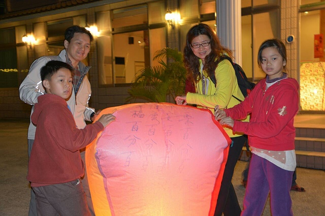 我們今天入住河灣渡假村。吃了晚餐,也有天燈可以放,四面的大面空白可以寫願望,還真一下子寫不出什麼願望,自覺都很圓滿了,只希望全家快樂,平安,健康,幸福百分百。不要太貪心.....