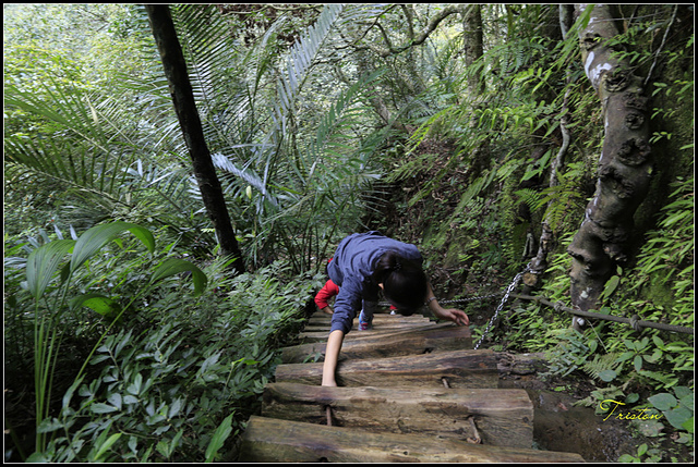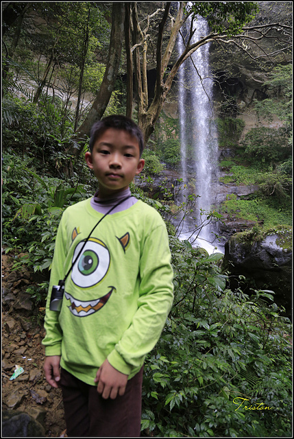 但路還沒完,如果要到瀑布頂端去,還得再上一段,這一段短點,但可沒有比較輕鬆....對比三歲時兒子第一次和我們走中之關古道時的樣子,今天真是不可同日而語