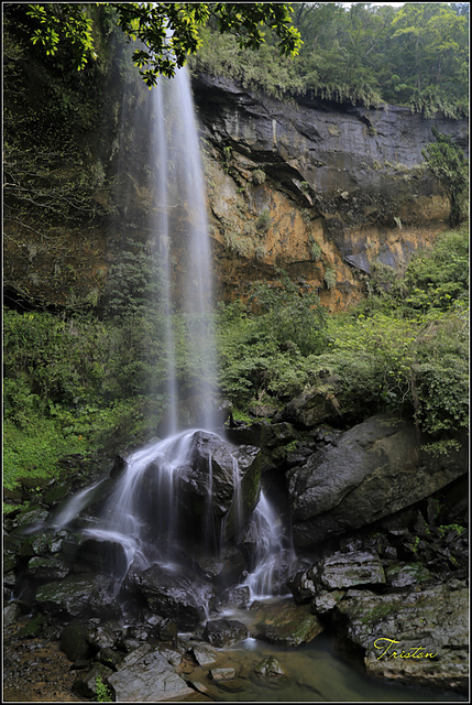 第二道摩天瀑布像一道絲絹地從天而下,長約十來米,只可惜觀瀑平台已經破損,而且再來是九十度的攀爬了...大家幾乎不多做停留繼續往前進...
