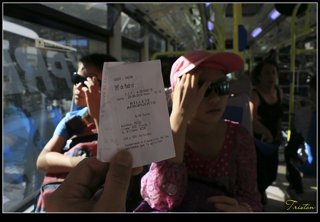 一出入境大廳開始尋找Airport express的站牌和班次,雖然在國內已經做好相關功課,但看到服務人員,還是要問一下比較放心,沒想到她聽不懂我的破英文和新學的西班牙文,一直說to madrid downtown ,yellow bus...好吧..yellow bus就yellow bus....等就是唄了..果然是yellow bus