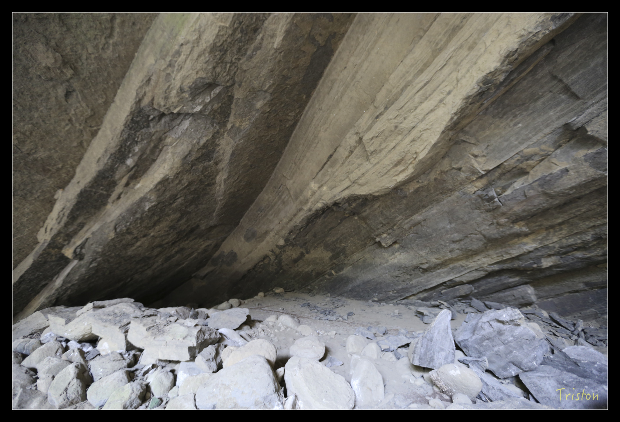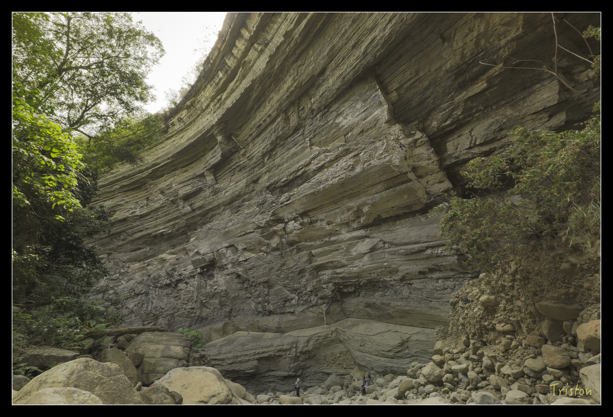 一片片的沉積岩層理,就像千層蛋糕,沿著層理剝落,萬一很不幸的就在下面,就會很快的駕鶴西歸
