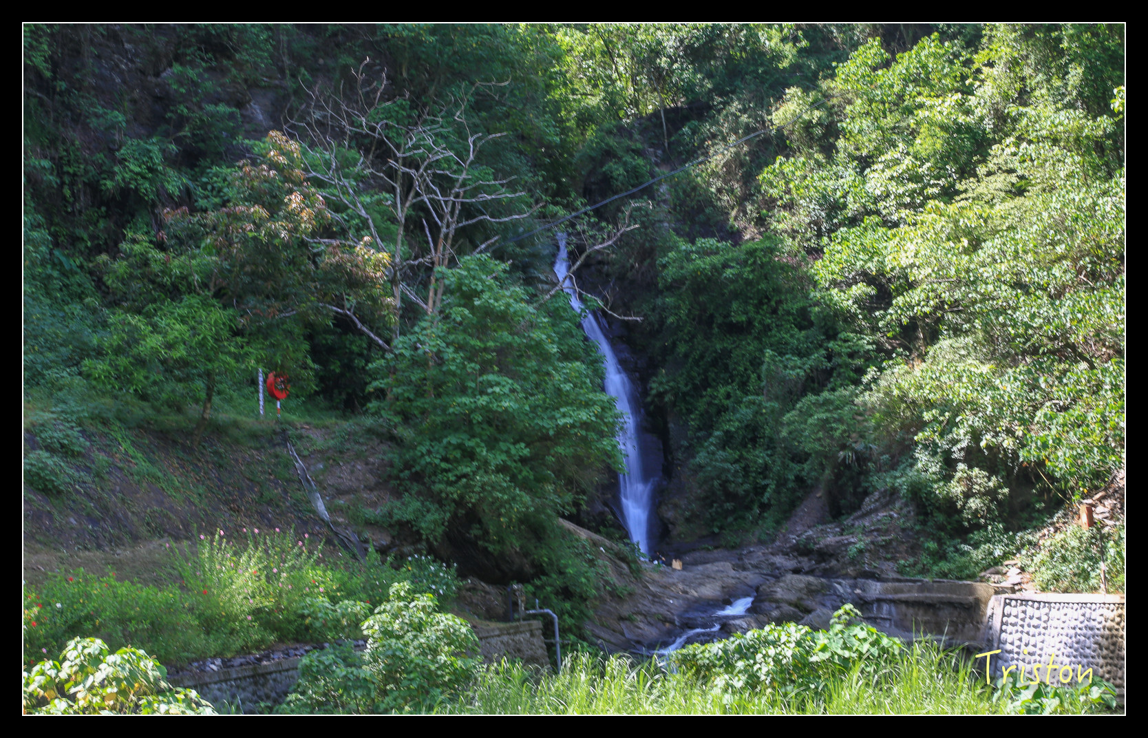 涼山瀑布分為三層,入口處附近是第一層,原本這裡蓄水成潭,在這裡就可以玩水了,不過風災後,腹地大受影響,現在不開放戲水,只有少數人跨過圍籬偷渡到瀑布下。