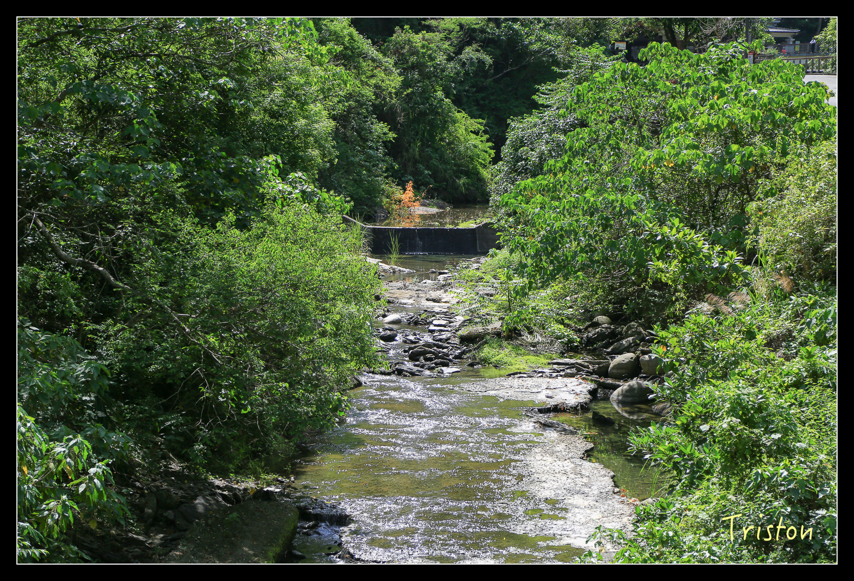 上次到涼山瀑布是2009年,結果玩後不到一個月就發生了莫拉克風災,之後再沒來過,現在涼山瀑布這裡修建了涼山遊憩區,想必是修建的更完善了。沿著牛角灣溪邊上行,溪邊停滿了黃蝶,天氣熱,連蝴蝶都得來補充水份