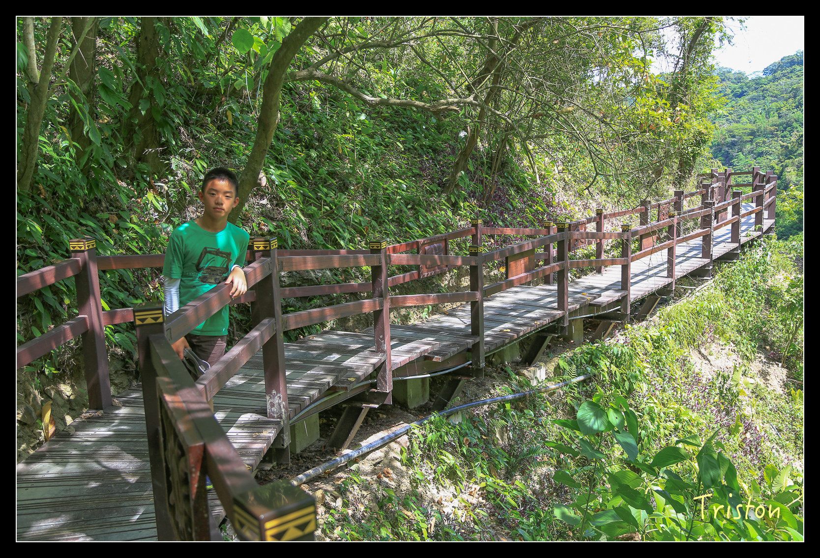 回程,兒子開始考較我的毒蛇知識了,有哪幾種啊?出血型,神經型和混合型嗎?那響尾蛇呢?我哪知道啊,台灣又沒響尾蛇。胎生,卵生?在更困難的問題出來之前,趕快"弟,這裡風景不錯,幫你拍張照片"...