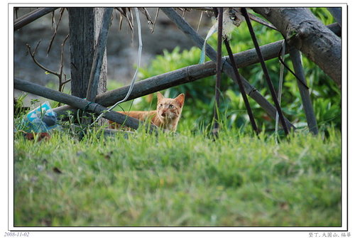 一旁虎視眈眈.想要躍上欄杆,扒出剩菜的小貓