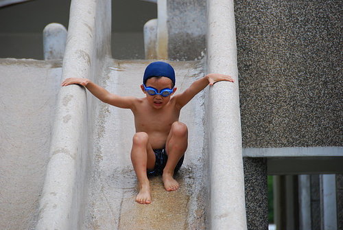 隔了半年..兒子長更大了...現在敢自己玩滑水道了...