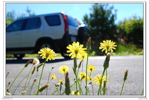 一大早的蒲公英迎著朝陽,死命地的開飽了黃色的小菊花,把一天的陽光吸足,好為即將乘風而去,身著白色羽冠的種子們做好遠颺的準備
