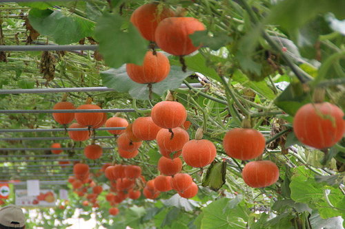 南瓜不是長在地上的嗎..掛著好像是燈籠