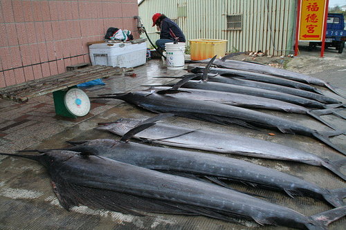 昨天下午出港的漁船回港囉..好大的旗魚...