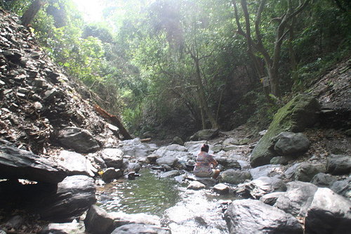潭邊竟有一位阿婆在此洗衣服,莫非瀑布邊的負離子具有獨特的神效,可以讓人延年益壽嗎?
