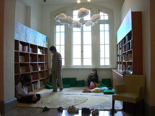 挺有意思的兒童文學館部份...這樣的空間讓小孩們有一個或坐或臥的閱讀空間..