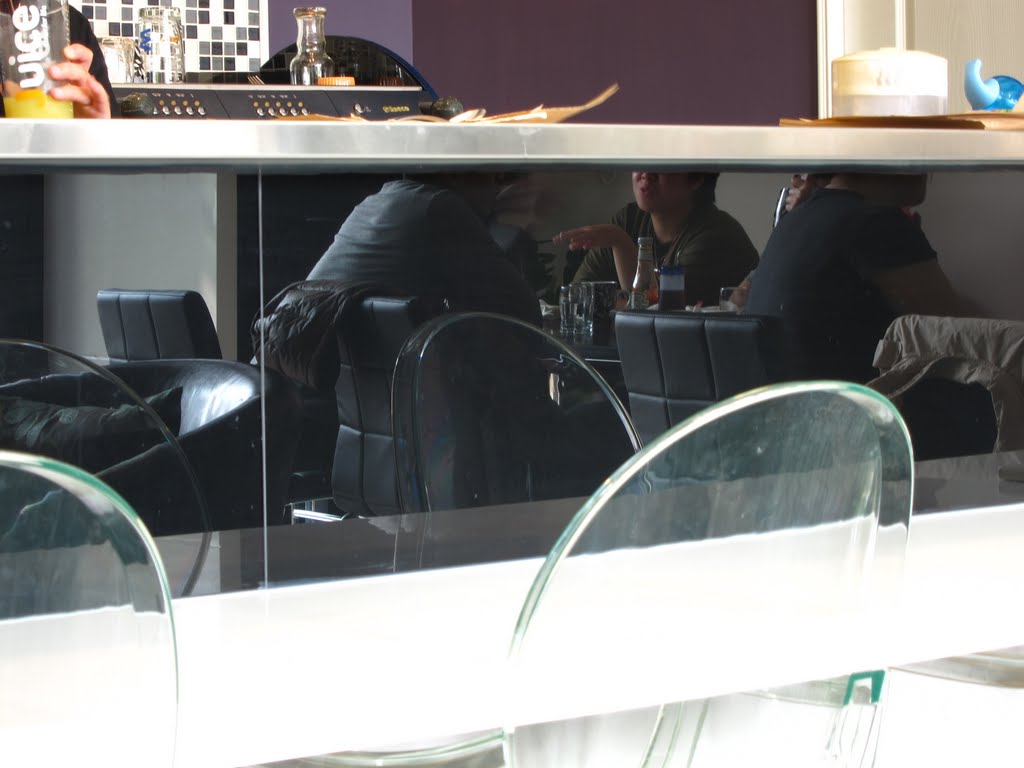 這個大位有人預訂了,窗明几淨的,感覺還不錯,結果來的客人是三個拿名牌包的婦人和穿件沒有剪標polo衫的男人,很奇怪,為什麼感覺走設計的人都有點娘娘腔..