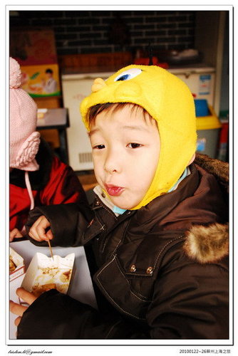 吃臭豆腐,不知道是真餓了還是好吃,反正小朋友就是埋頭苦幹了一頓!
