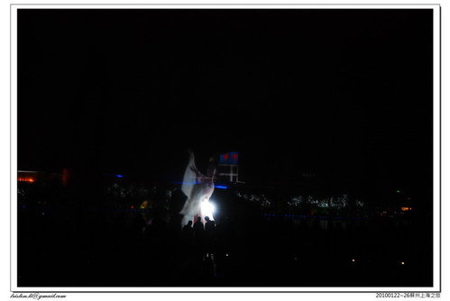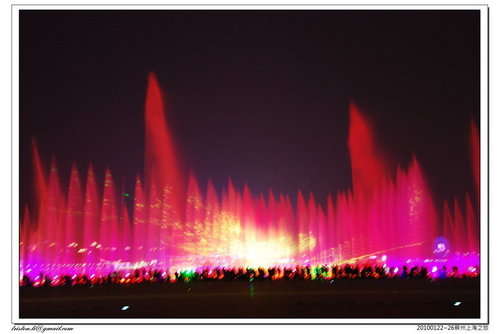 相對於前方的人群高度,水柱果然噴的老高,而且還有火焰齊放,站遠一點果然是對的.