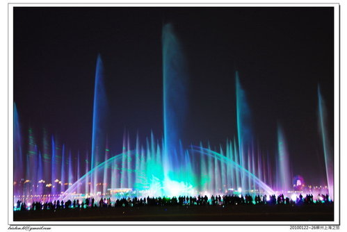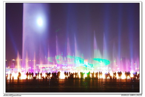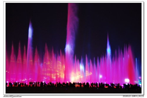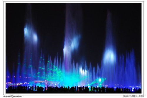 和小姑姑會合後,直奔小姑姑極力推薦的金雞湖,先用了一頓符合台灣價位的涮涮鍋後,冒著3度的寒風,人群慢慢的往水舞區集中,看來小姑姑是識途老馬了,我們就往大後方沒人的地方移動,看來那裡可以看到全景,也不會被冰冷的水霧濺濕.