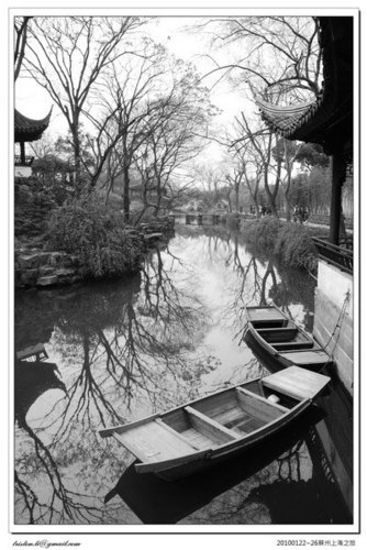 冬天的拙政園顯得有點蕭瑟,不過枯枝映在水面上,也是一種景色.