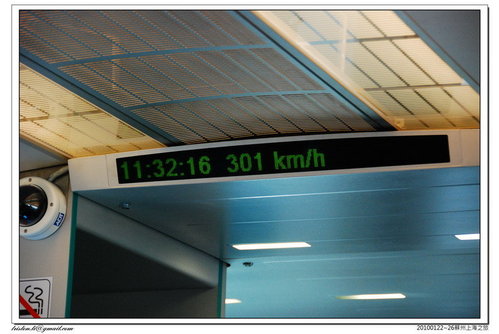 時速最高才開到301km.真是有點給他失望,至少要飆到430km才對啊.如果才300,那我還要坐磁浮幹嘛!