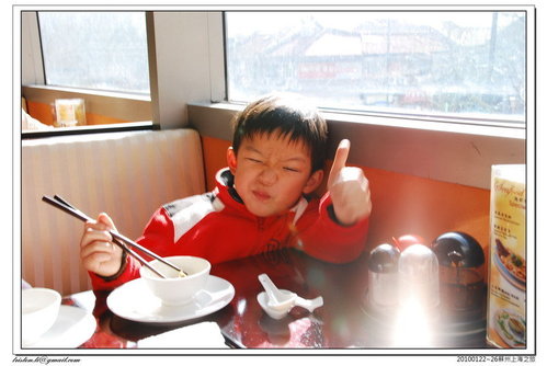 不過東西的確是不便宜,點了四五道不算太多的菜,也花了五六百rmb,有一道煎牛柳塊大概真的太好吃了,我們家的小子不停筷地夾,還要調皮的做出好吃的表情.