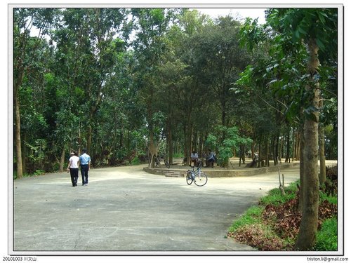 順道一提,川文山其實是私人的土地,原本是占地十四公頃多的梯田式芒果園,官田鄉民"賴顯明"先生把自己的土地拿來做造林,然後再開放給民眾休閒旅 遊,而且又不收費,另外也有部份土地是國軍在官田大內營區的訓練場地,拜部隊管制再加上賴顯明"先生努力植樹之賜,這裡遍植了上萬株的桃花心木、雞木、樟 樹,還有幾棵超大的榕樹,來走一趟就知道有多大!