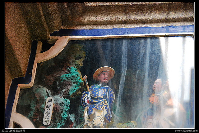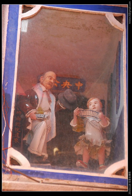 國父- 何金龍師傅於日治昭和三年整修金唐殿,時值民國十七年,在日本統治之下,大膽地將國父孫中山的剪黏塑像放置在廟前兩邊的牆頭墀上,意外的竟然沒有被日本人發現而得以保留至今
