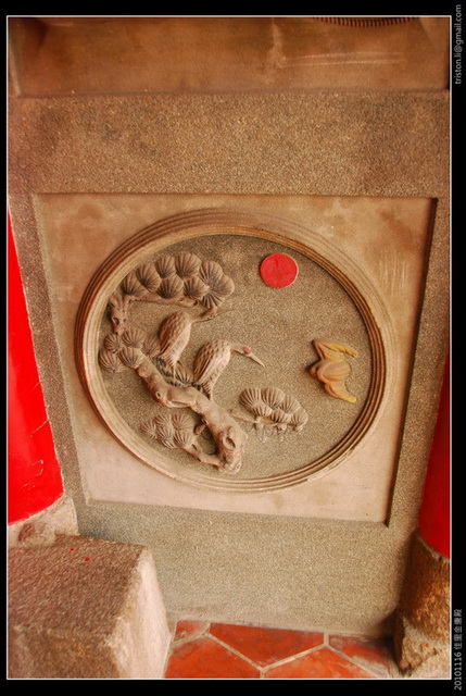 三川殿步口北下-洗石子浮雕-松鶴延年
