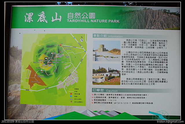 今天要走訪彌陀鄉的漯底山自然公園,我們本來是打算到柴山看夕陽,可是這兩天有點小累,某天看到上一期的商周竟然報導南部的漯底山自然公園,上網一查,好像離我們家沒有太遠,於是決定改變週日旅遊目的地,前往彌陀漯底山自然公園一遊。