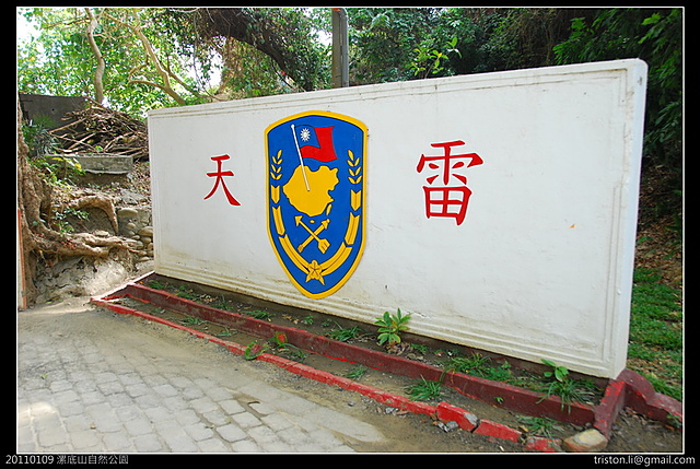 漯底山自然公園的步道入口還可以看到"天雷"營區和哨所,看"天雷"這兩個字就可以想像它原本的任務就是以雷霆萬鈞之勢,從天而降,給敵人打擊。也就是炮兵部隊的任務