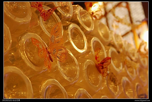 再來當然就寶特瓶建的”流行館”-遠東環生方舟,它是由超過152萬支回收的廢棄寶特瓶所蓋成,不但質輕而堅固,號稱可以通過地震及颱風的測試。其實我看到這棟建築時就想到也可以用寶特瓶蓋漂浮的房子或漂浮的遠東百貨啊!我聽說有利用12,500支回收塑膠瓶製成的寶特瓶船,會在推廣環保的環球航程中,於3月底航向台北花博,然後停泊在遠東環生方舟中!