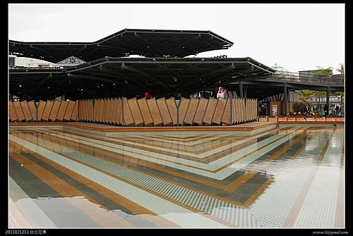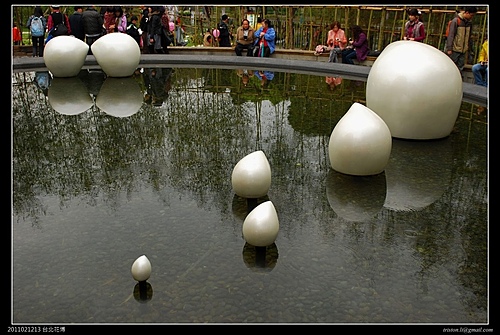 走人行天橋過來美術園區,一下天橋就可以看到專賣紀念品的”風味館”,由某一角度看風味館的水池倒影!
