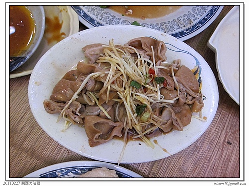 滷大腸,這道口味不錯,不會太鹹或太酸,大腸也都滷透了,一咬即爛!一般客家的這道菜都好酸,他的倒不會!