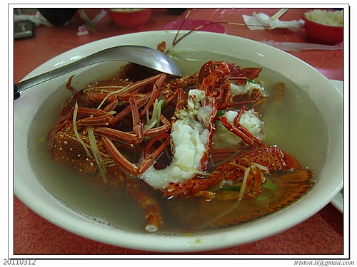 這裡最有名的是小隻的野生龍蝦,一斤1000元(約三隻)....清煮龍蝦湯或龍蝦生魚片...這一盆有六隻