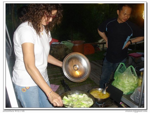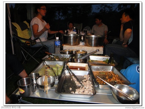 今天來的特早,搭好了帳篷,才到中飯時間,今天菜色是麻醬關廟麵,用素樸的美食簡單果腹,重點在晚餐囉!