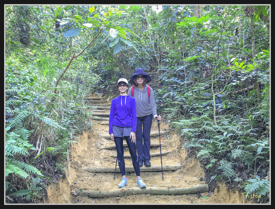 但是我們就直接走進後山的登山步道了。步道雖然上下高程變化不算大,但還是有些段落要走階梯的...