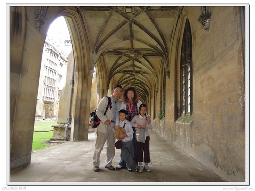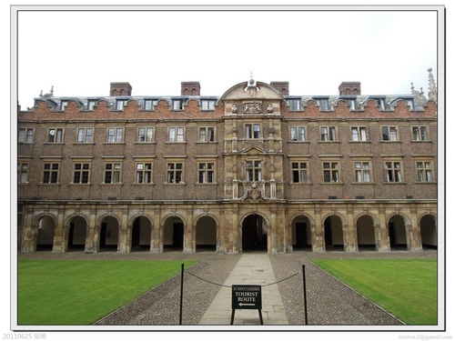 其實劍橋大學中各學院的建築配置都挺雷同,一個口字型的學院中庭,然後會有個十字型的東西南北向道路,然後草皮座落四角..