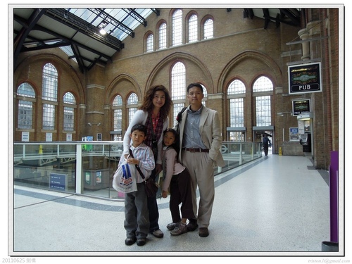 由Cambridge到Broxbourne,到站前要按火車門上的“OPEN按鈕”,否則到站門可能不會自動開門,停車時要自己開門..可惜忘了拍照,一下車就看到六年不見的同學在月台上等了,六年不見,大家看來都多了點爸爸的樣子喔!
