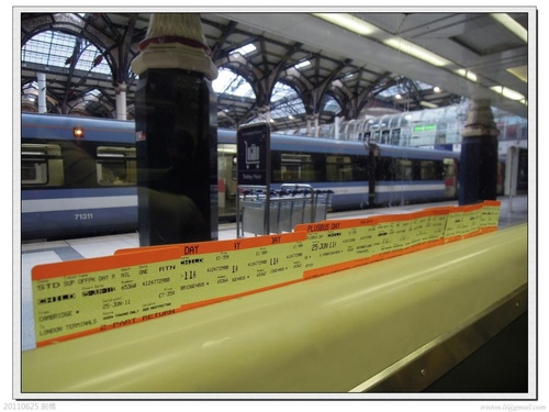 火車大約一個小時又十多分鐘,抵達終點Cambridge車站,劍橋車站小小的,不過站內買票的人潮洶湧,如果要進城,在站前的圓環就可以搭巴士進劍橋的市中心(步行大約半小時),再步行到各學院